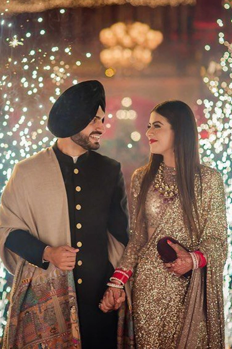 Simranjyot wore a glittering all over sequin saree by Sabyasachi Mukherjee.