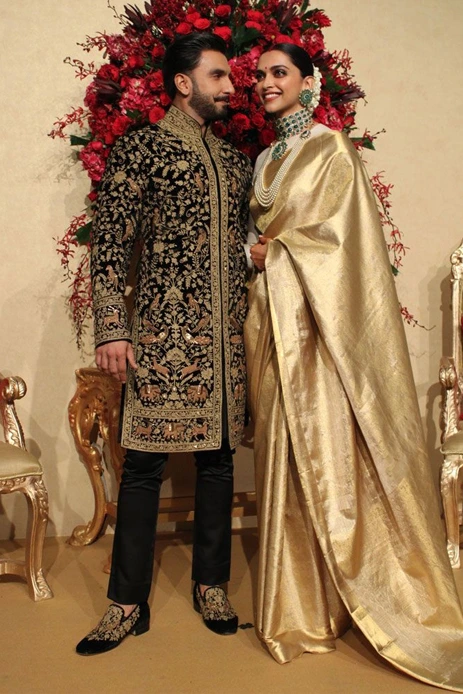 Deepika Padukone exuded elegance with a touch of glam in an all gold kanjeevaram saree by House of Angadi.