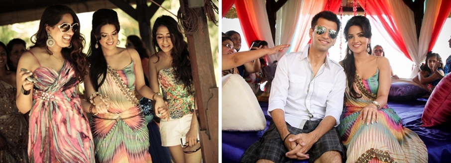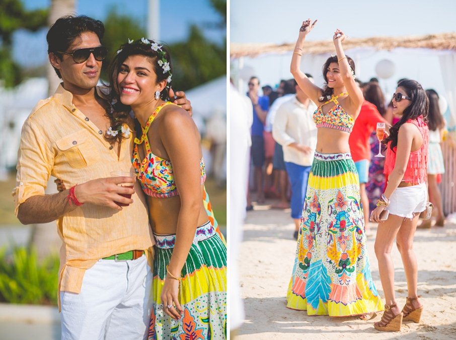 A quirky and comfortable skirt and top from Pia Pauro worn by bride Archana Vijaya at her ‘Vanilla Sky’ themed Mehndi function with a ‘Bright and Breezy’ dress code.