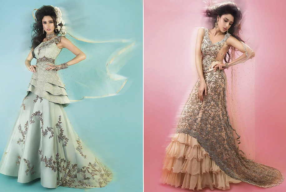 The Khubsoorat Collection is a manifestation of the designers’ love for regal Indian haute couture. The stunning range of couture bridal lehengas is rich with the ancient traditions of Indian craftsmanship. The brand is also popular for beautifully constructed evening and wedding gowns as well as bridal lehengas, wedding sherwanis, and glamorous innovative capsule collections. The options are endless but we particularly loved these bridal ensembles which are the quintessential regal attire for every bride.