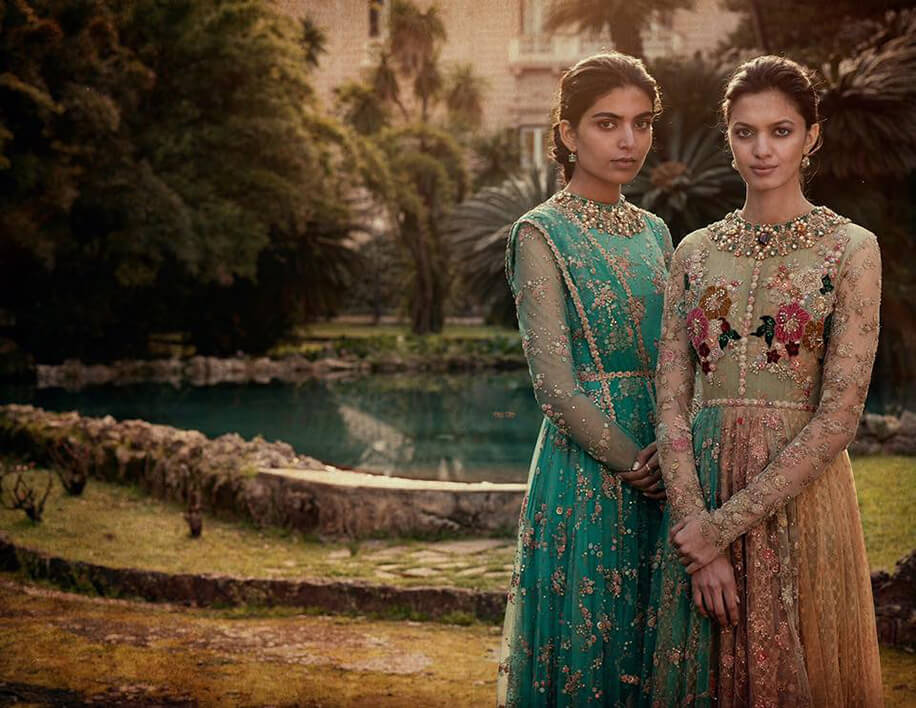 You don’t expect a lightweight ensemble from Sabyasachi, but these floral beauties are super gorgeous and lightweight. Embroidered with detailed motifs and interesting color combinations, these stylish masterpieces with neo-vintage accents are perfect for that garden party or outdoor wedding celebrations at a beautiful destination.