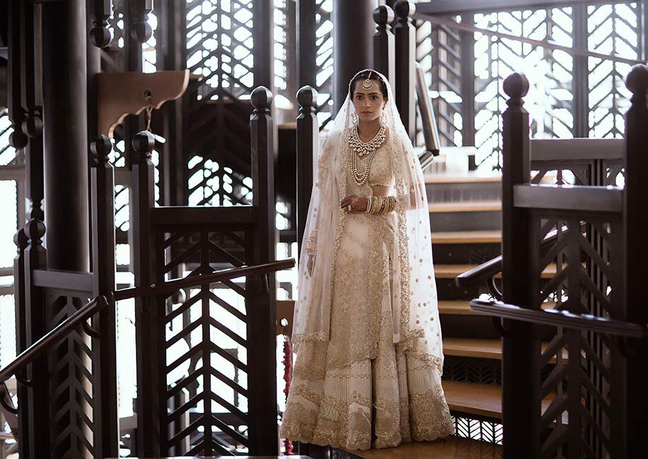 Gold is not the only precious metal especially when it comes to your trousseau. Silver is very much the millennial choice for weddings and accessorizes wisely and you’ll look out of this world. Bride Mariam dazzled in this sparkling creation at her beach wedding at Angsana Laguna Phuket.