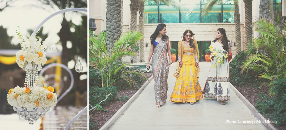 Hey sunshine! It’s bright, it’s bold, it’s fun – yellow brings a spark of joy to any bridal look. Get happy with bride Karishma who was effortlessly effervescent wearing her gorgeous yellow lehenga at her Dubai wedding at the Madinat Jumeirah.