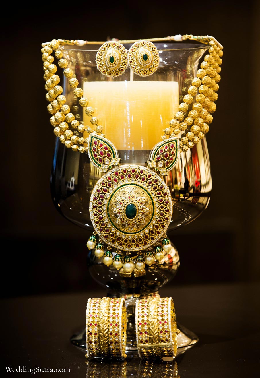 When it comes to wedding jewellery, the more traditional the better. A bridal set that looks like it came out of the ancestral treasure box will gleam beautifully on a day steeped in personal beliefs and religious traditions. This particular bridal set is stunning in its opulence and is guaranteed to make the bride the indisputable belle of the ball. Comprising of great nuggets from the Mughal jewellery atelier, this bridal set also has rare gems from Gujarati and Rajasthani heritage. It is a beautiful blend of time-honoured tradition and evocative of the magnificence of Indian culture.