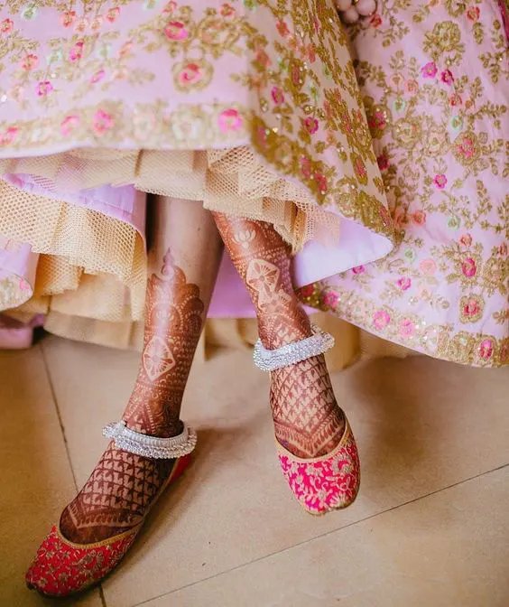 Shimmering anklets with bells at the ends that tinkle with every step, the pajeb typically goes unseen under a Punjabi bride’s lehenga. However, it remains a much-loved accessory that Punjabi brides see as essential for their bridal getup.