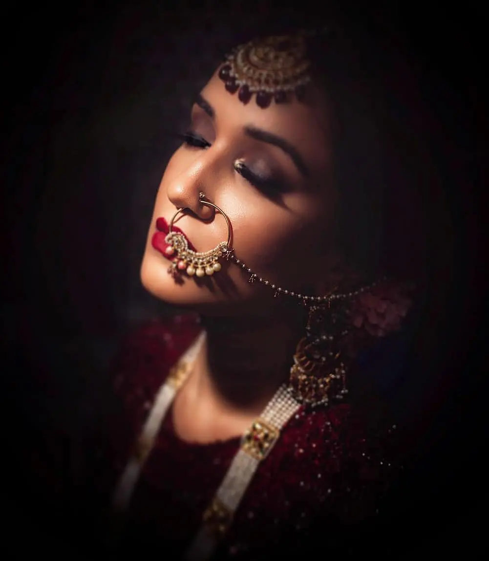 Donned by women on festive occasions as well, the laung is a gold nose stud that is embossed with intricate designs. However, in some cases, brides sport a more ornate design for their big day.