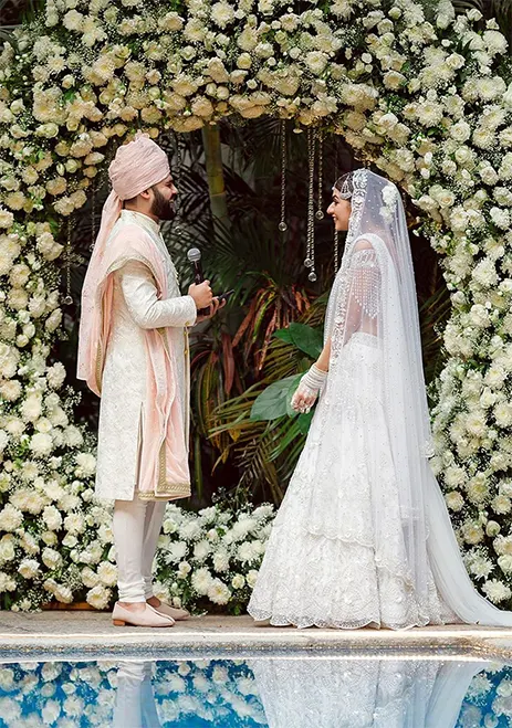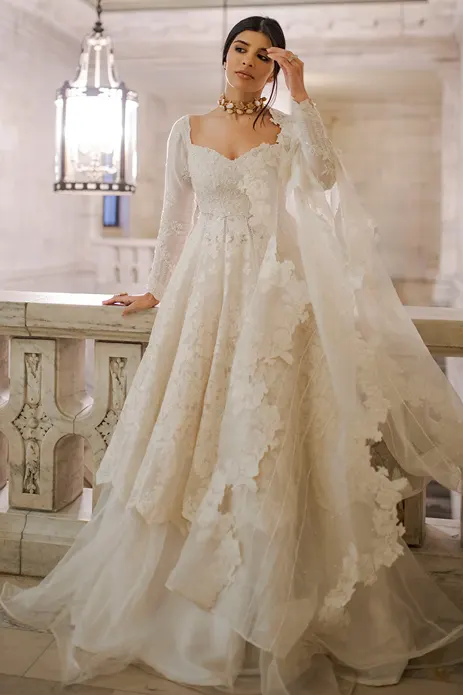 In the flurry of reds and pinks, we understand the need to stand out on your wedding day. While there are many gorgeous and unconventional hues to choose from, nothing looks as enchanting as a bridal outfit in ivory.