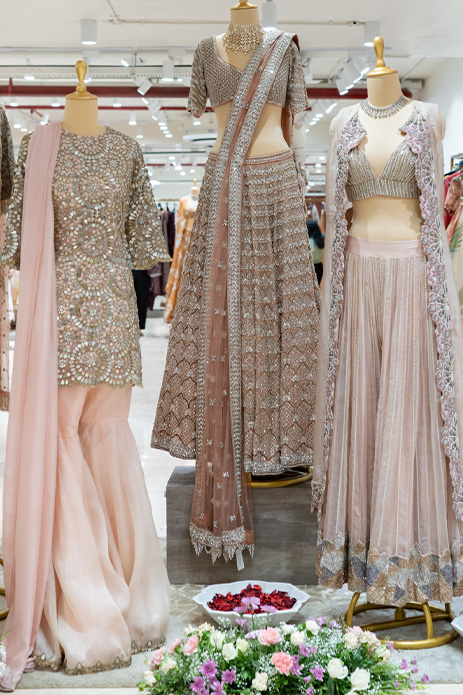Browse through the best colors, textures, fabrics and lehenga trends with Tattavam Fashions. The multi-designer store houses the coolest of designers such as James Ferreira, Rajdeep Ranavat, Komal Sood, Ajay Agarwal, Sonia Jettley, Bhusattva, Aditi Bhatt, Isharya, Dhora, Zarrin, Trishuli, Fuchsia and Rousse that are sure to add a dash of tradition to your bridal trousseau through their designs.<b