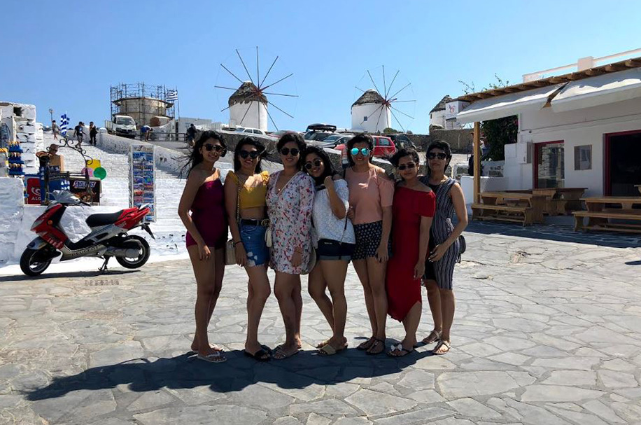 Krupa says, “Aashni and I decided to celebrate our bachelorette together. Including the two of us, we were 7 in all. We’ve been childhood friends and now we’re getting married just 10 days apart. It’s surreal! I’d always wanted a beach vacation with my friends for my bachelorette – perfect for both partying and relaxing. Safety was obviously a very important factor and Mykonos and Santorini perfectly fit the bill. Most of us hadn’t been to Greece before so it was even more exciting for us.”