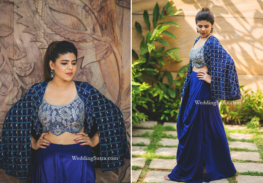 The deep blue lehenga by Rebecca Dewan made for the perfect outfit for this look. “The ensemble I wore was quirky, and it was quite different from the kind of clothes I usually wear. The color stood out, and the styling was great,” said Vaibhavi.