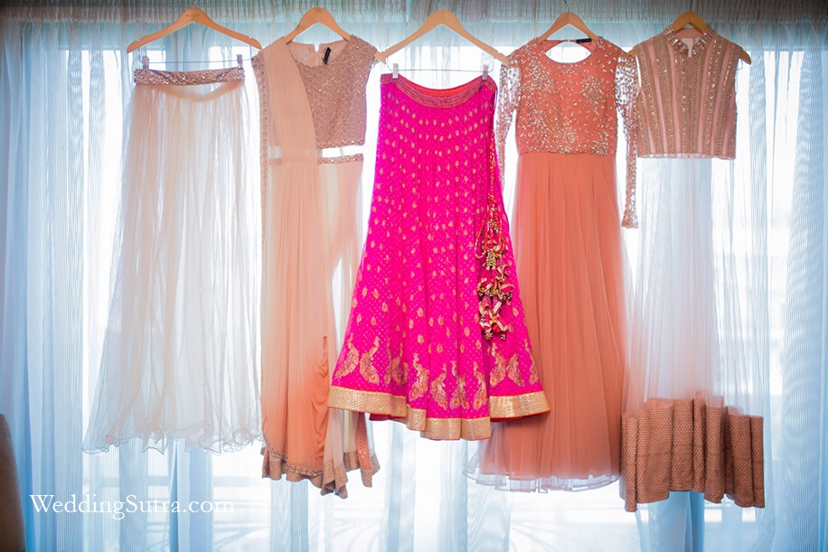 The bridesmaids were spoilt for choice – gowns, anarkalis or saris? Which would they choose to complement their friend’s attire?