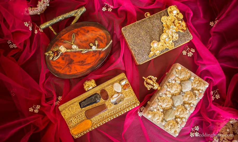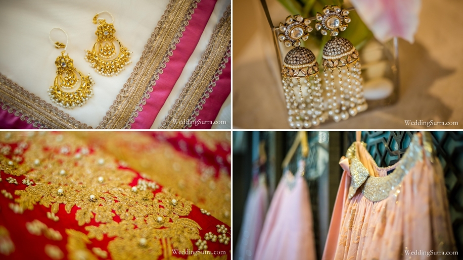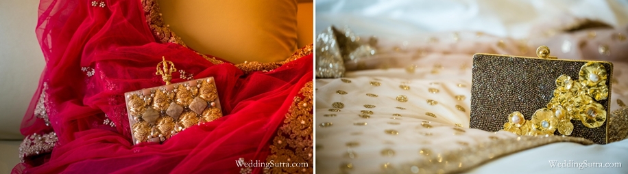 Then it was time for the bride to get her hands on a range of bridal jewellery by Manubhai Jewels. She chose a choker and maang tikka while her bridesmaids picked earrings from Pookaari‘s wide range of jhumkaas and chaandbalis. With clutches by Be Chic to accessorize their ensembles, the girls were done.