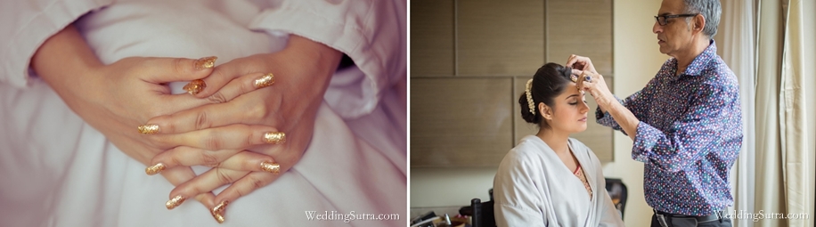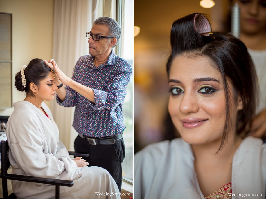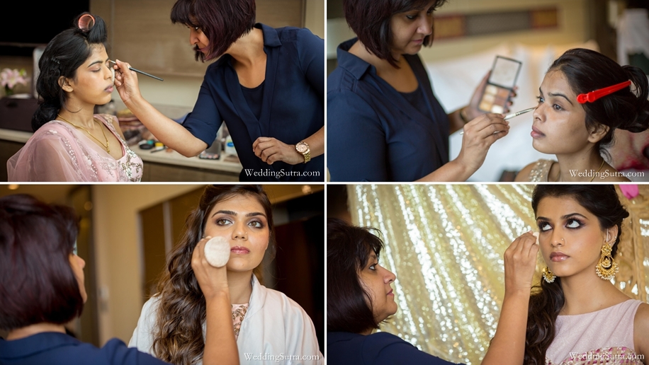 Cory Walia’s team of experts walked in and the girls just gaped at each other in awe as they were deftly transformed in their first professional hair and make-up experience. Amrita was taking notes right through as she watched Cory himself use the shimmery Illuminate range by Lakmé Absolute to work his magic. While each of her bridesmaids retained their own unique personalities, they loved how there was a group synergy with the looks. “There’s loads to learn from Cory,” Amrita mused, “I waited patiently as Cory worked on my makeup near the large suite windows and finally looked at myself in the mirror, glowing like never before!”