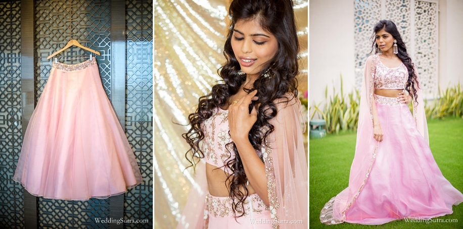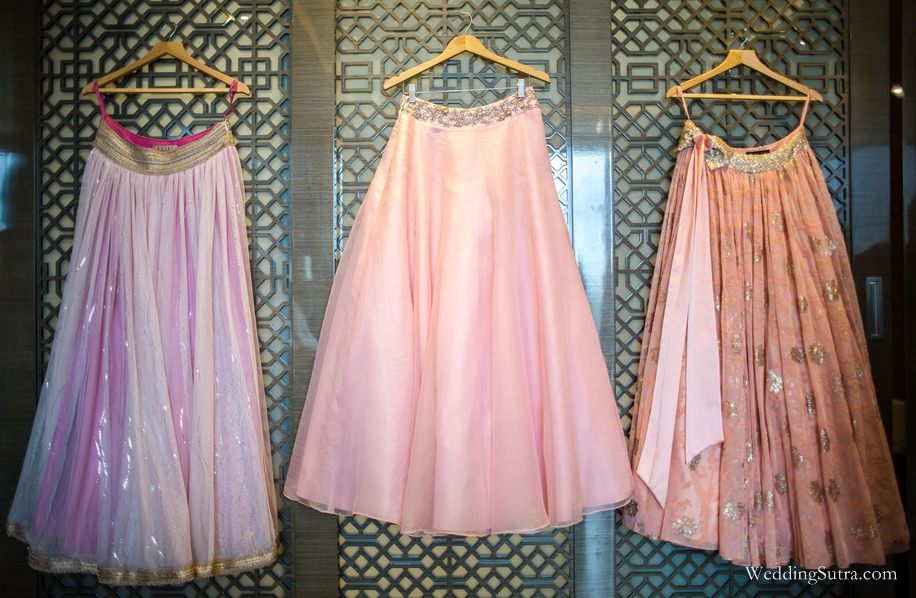 Pastel pink and blush bridesmaid lehengas by KALKI Fashion