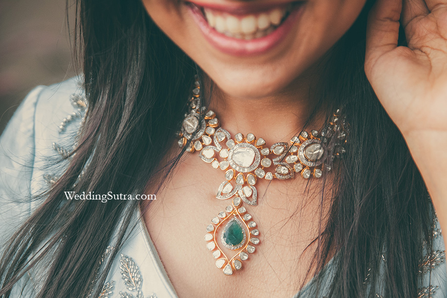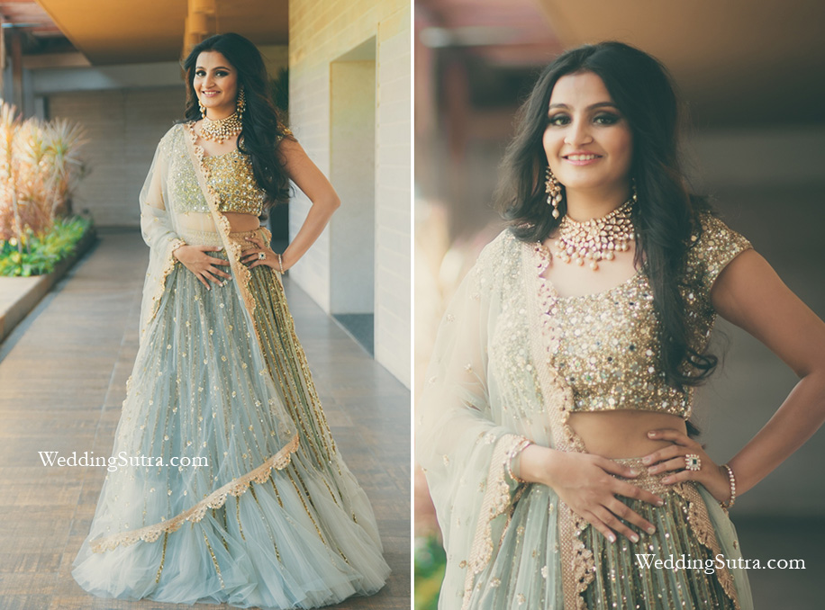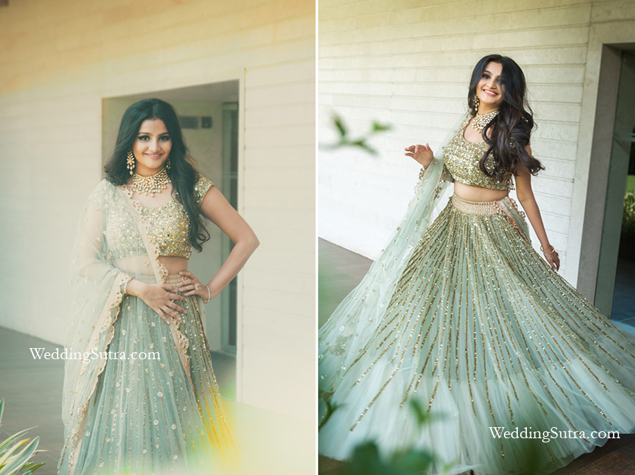 Disha opted for a sea green lehenga from Aza Fashions which she matched with a kundan neck piece from Kalyan Jewellers. Telling us about her love for chokers she said, “I can never have too many chokers! Selecting this set didn’t take me longer than a heartbeat. The design is so pretty. It went perfectly with my outfit and enhanced the entire look. I absolutely love it!”
