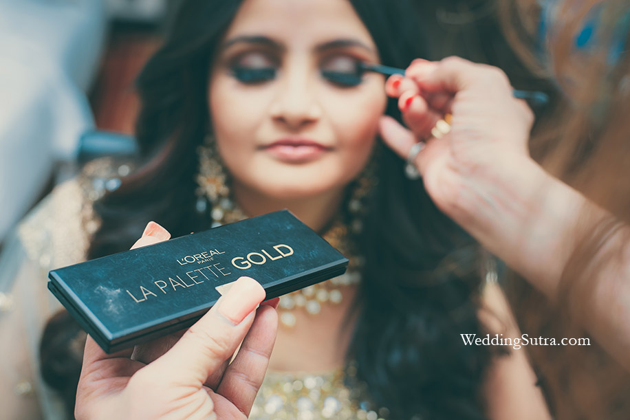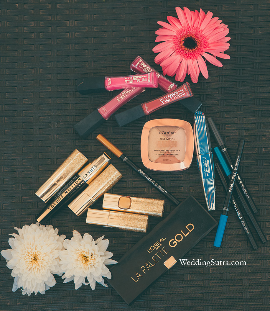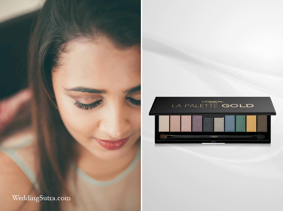 To go with Disha’s gorgeous outfit in blue and gold, makeup artist Ojas Rajani created dramatic eyes that reflected the summer sky. The L’Oréal Paris Color Riche La Palette Gold was at hand – comprising 10 highly pigmented shades to flatter every skin tone. It was all Ojas needed. She completed the eye makeup with the L’Oreal Paris Volume Million Lashes Mascara for show-stopping lashes that were both thick and long. Disha’s bridal look was complete with the velvet textured L’Oreal Paris Infallible Pro-Matte Gloss that’s soft on lips and stays all day long.
