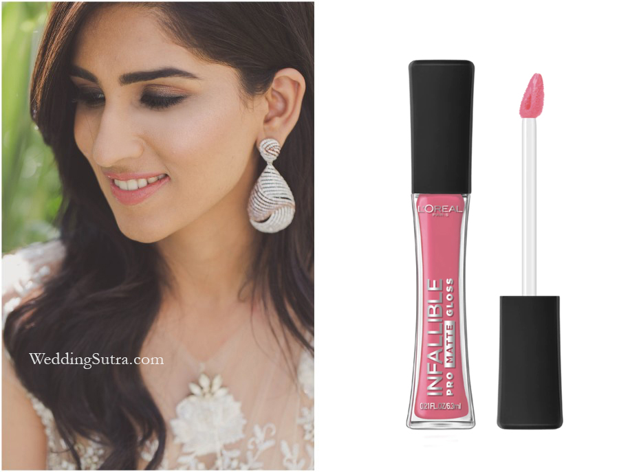 Makeup artist Hinal Dattani envisioned a romantic look for Jheal. Once she had prepped her skin, she highlighted her eyes and lined them using the L’Oréal Paris Infallible Gel Crayon Eyeliner in Back to Black. The supersaturated gel liner opened up her eyes instantly making her look brighter. With a wide assortment of colours ranging from nudes and pinks to plums and reds the lines has a hue to match everyone’s taste. For Jheal she used L’Oréal Paris Infallible Pro-Matte Gloss in Blushing Ambition lip color, an intense, highly pigmented, matte shade.