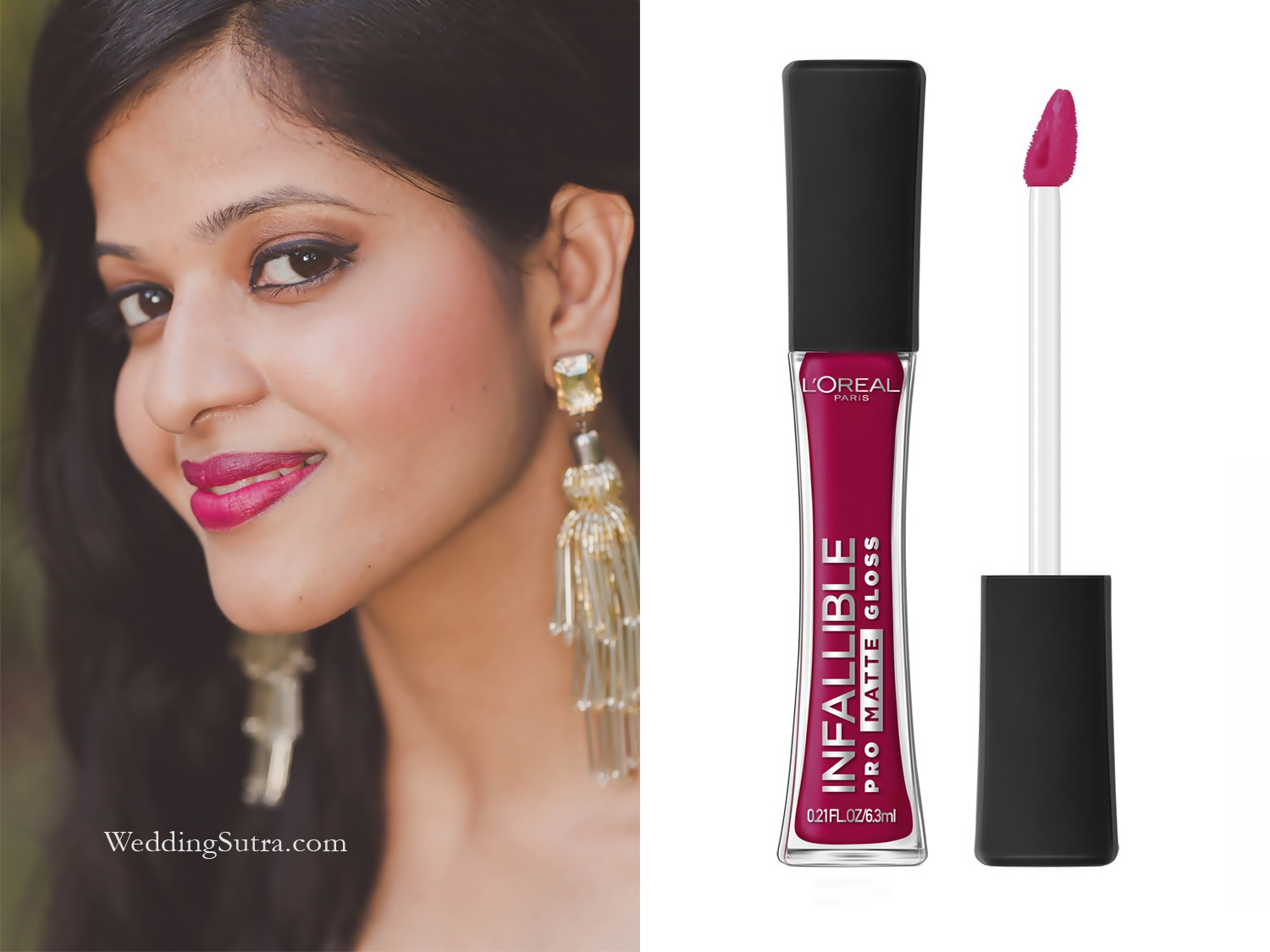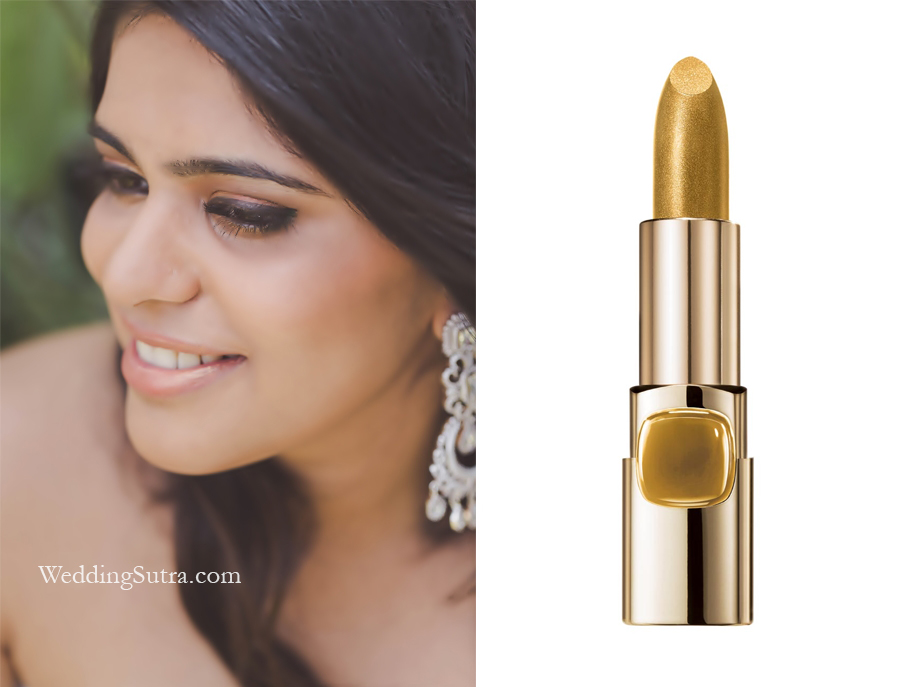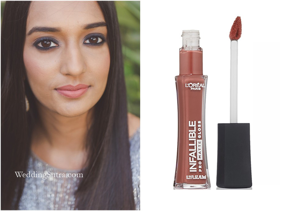 For Divya, makeup artist Hinal Dattani created a look that was chic and contemporary. She intensified her eyes using the L’Oréal Paris Infallible Gel Crayon Eyeliner in Back to Black. The saturated black pigments ensured a deep color payoff and the creamy formula allowed easy application. Since her eyes were dramatic, Hinal toned down the rest of her makeup and opted for the L’Oréal Paris Infallible Pro-Matte Gloss in Bare Attraction.
