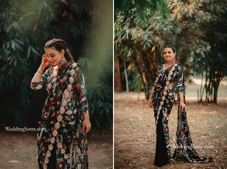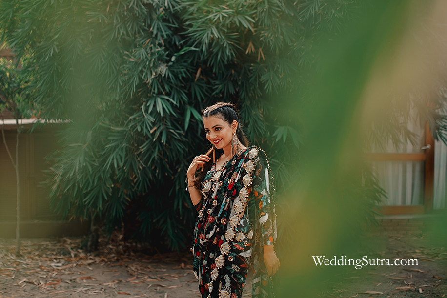 “Firstly, I was amazed by Pooja’s work. She was so professional. Secondly, I was very happy with the products that she used,” Aastha said beamingly. “The lipstick especially had such a beautiful color. I would use it again. It also did not wear off at any point through the day which was very impressive!” Gushing about her saree, she said, “From the moment I saw the Shivan & Narresh saree I knew it would suit me and it did! It was unconventional and went with the theme. It helped me see a new side of me because I didn’t imagine it would look so lovely.”