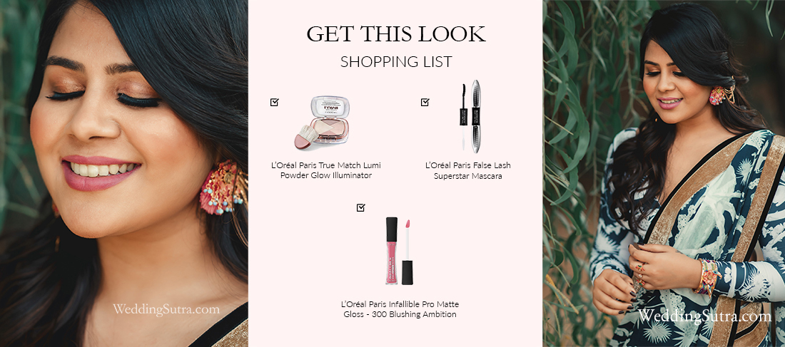 Makeup artist Pooja Khurana brought an easy elegance to Chikky. She left the color of her lips soft with the L’Oréal Paris Infallible Pro Matte Gloss – 300 Blushing Ambition. The high-impact velvet matte lipstick ensured that there was no dry-out and she was comfortable all day long. She highlighted her face using L’Oréal Paris True Match Lumi Powder Glow Illuminator. The lightweight formula is designed to impart ultimate luminosity and added an ethereal touch. Her look was completed using the L’Oréal Paris False Lash Superstar Mascara. The brand’s first curler effect mascara wrapped itself around every stand of her lashes to give them a super-lifted glossy black appeal.