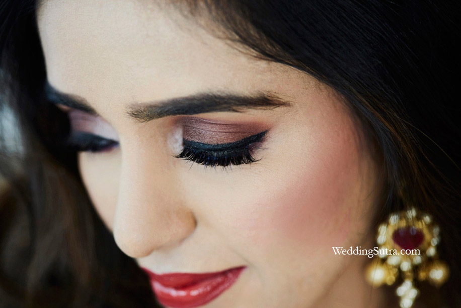 It was Bride gone Bold for Lakhi. Kajol R Paswwan highlighted her lips using a metallic red Ruby Gold matte lipstick from the Color Riche Gold Obsession range. She then enhanced her eyes using the bright pigments of L’Oreal Paris Color Riche Le Stylo Smoky Eye Shadow in 101 Antique Brass. The final touches to the glam look were multiple lashings of Volume Million Mascara.