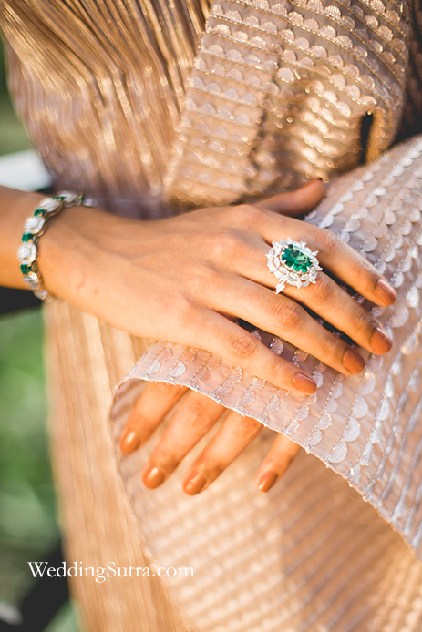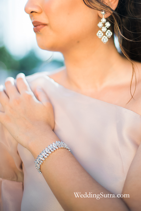 One of the most coveted experiences of weddings is the chance to live out the fantasy of looking and feeling like royalty, gilded and sparkling with precious gems. For their cocktail party, the squad wanted to imbibe an air of delicate elegance into their look, and were styled with scintillating pieces from DNA Jewels, famed for their exquisite fine handcrafted silver jewellery that can be customized to suit every taste and budget. Contemporary designs encrusted with brilliant diamonds and glittering semi-precious coloured gems sparkled in the afternoon sun.