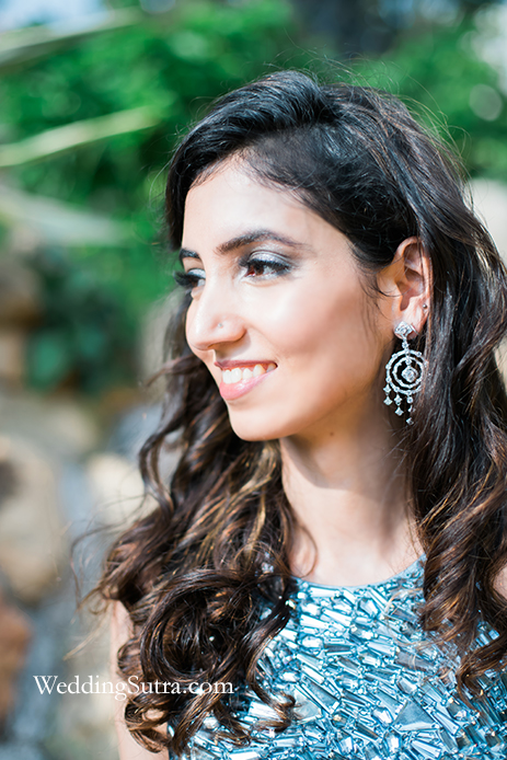 Farheen got the chance to embrace styles she’d normally shy away from. She says, “My outfit from Pankaj and Nidhi was unlike anything I’ve worn before; edgy and elegant with its glittery mirrored detailing. I felt like an ice-princess and the aesthetic was perfectly complemented by jewelry from DNA Jewels. Dangling earrings featuring cascading diamonds, a curved bracelet and a statement ring all added to the glamor. My hair was left in romantic, loose waves and I absolutely loved how Awantica highlighted my makeup with pops of blue for extra oomph.”