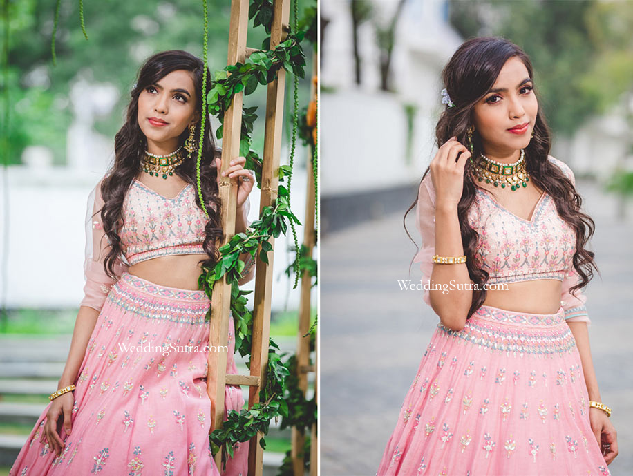 Suhena loved the jewellery she wore. She shares, “The accessories I wore were beautiful. I picked a heavy necklace which I teamed with long earrings. The green in the ornaments against the baby pink of the outfit looked stunning and this choker added a traditional touch to the whole look.” Before she left, she couldn’t resist mentioning how much she enjoyed herself. “Everyone was so enthusiastic and the vibe was so positive! This day felt like I was playing dress up with my girls.”