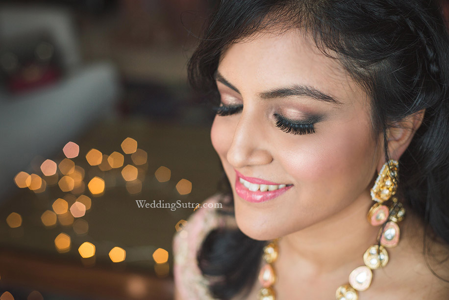 Makeup artist Shamita Gogia chose to go with the flow and create a soft visage with a pink pout. The bride smiled that beautiful smile as she enthused, “Everyone made me feel so comfortable and it was an absolute fun day with my girls. Shamita shared some great makeup tips for my big day and the photographers helped me pose and look my candid best.”