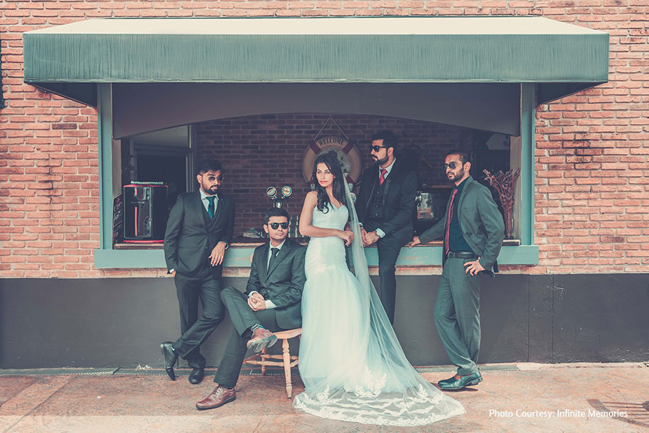The couple’s biggest challenge when it came to planning this joint experience was finding a photographer. But Tanya says that once she met the team from Infinite Memories’, she was convinced of their ability to connect with their squad and make them feel at ease while photographing them. “We were looking for someone who could relate to us and our intent behind this. After a lot of research, we found Infinite Memories who understand exactly what we wanted. After multiple discussions about the location, concept and styling, we were finally prepared to make it happen. It was difficult to pull off a shoot with twelve people in five days in between all the celebrations, but with everyone’s support we truly managed to create infinite memories! The pace of the trip was frenetic but we managed to get flawless frames out of it!”