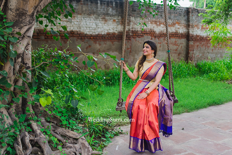 To add a traditional touch to this modern look, Aahat turned to the collection of gorgeous Indian wear that Taneira had to offer. She picked a rich Kanjeevaram saree which she paired with bling from Just Jewellery’s range of exquisite baubles. Each piece played a key role in accentuating her look. Once she had them on, she was totally camera ready. Shutterdown followed her through the day to get the best of both candid and posed photographs, thus making this day that she will always remember through their beautiful images.