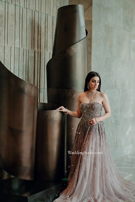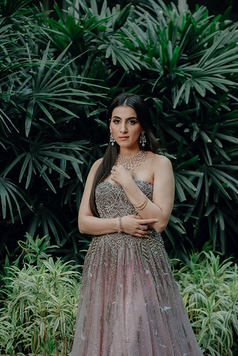 Aanchal exuded contemporary elegance in a shimmering couture gown diamond baubles by Tanishq