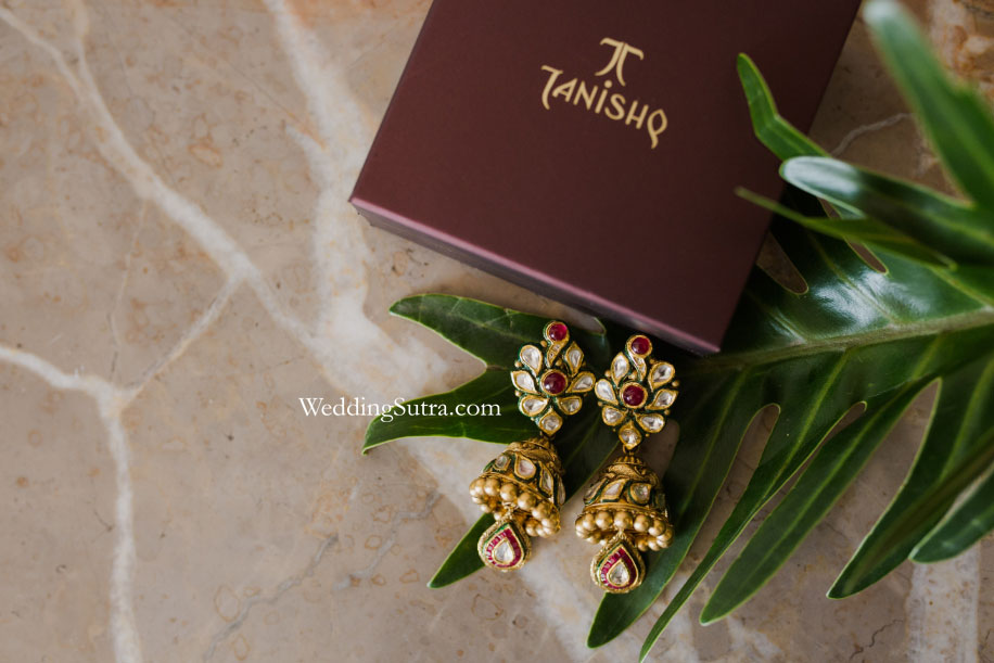 The right jewellery must perform the delicate balancing act between the attire and the make up. Ayesha and the team decided on minimalist elegance – an easy choice from the magnificent range on offer at Rivaah by Tanishq. Ayesha’s choker was created out of a cluster of leaf motifs rendered in kundan and gold. The ruby-encrusted pendant and the matching leaf-shaped jhumkis complemented her outfit and brought a bucolic touch to the look. She added a kundan maang tikka and a heavy gold bangle from the brand to complete the set. Fascinated by Tanishq’s craftsmanship she says, “I’ve rarely come across designs that morph classics with contemporary so beautifully and that too in gold!”