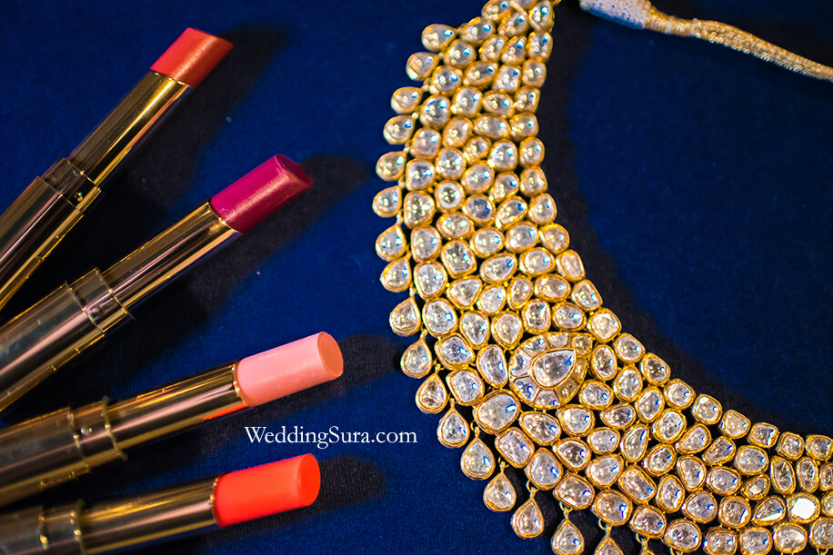The day began with makeup artist Mausam Gandhi assessing and visualizing transformations for these pretty brides-to-be. Using her skills and the excellent Lakmé Absolute Matte Ultimate Collection along with the Kareena Kapoor Khan Collection, Mausam worked her magic on the girls. Showcasing the incredible new range of lipsticks from Lakmé Absolute and Mausam’s expertise, Dhwani, Pooja and Miloni were a vision to behold. Mausam also created hairstyles for the girls that complemented their stunning jewellery, makeup and attire.