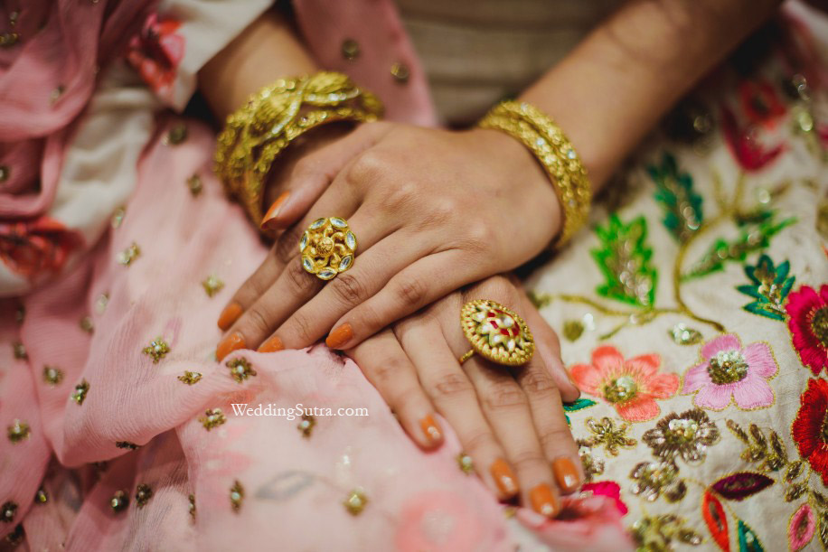After scanning through the wide range of designer outfits from Aza Fashions, creations by Aneesh Agarwaal, Sabyasachi, and Mrunalini Rao were selected to make the girls look nothing less than royalty. They explored bespoke gold jewellery by Azva that were products of fine designs and expert craftsmanship. WeddingSutra Favourite The Photo Lab spent the day clicking some beautiful pictures of the three brides-to-be as they posed for the camera.