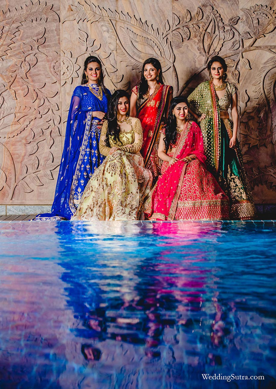 Captured by Photographer Arjun Menon of Art Leaves a Mark , here’s a little sneak peek showcasing the memorable moments in the company of Team WeddingSutra and our ace make-up artists Cory Wallia and Tejas Shah. Stunning jewellery was by Azva, designer bridal ensembles by TarunTahiliani from Ensemble, Sabyasachi Mukherjee from Aza, Anita Dongre and Falguni and Shane Peacock made our selected brides-to-be Dipti Satwani, Priyam Prasad, Mekhala Sawant, Rihaa Kothhari and Nidhi Jogani look absolutely gorgeous. Shimmery bridal ensembles and makeup contributed to a fun and comfortable wedding rehearsal moments for all our lucky brides to be.