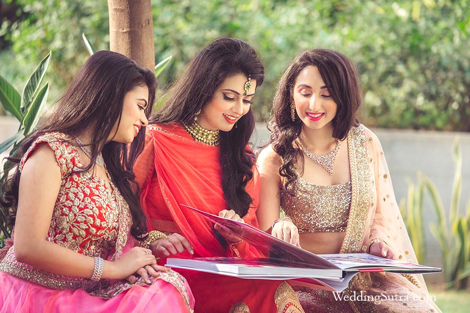 Sachi, Sneha and Naoumi flip through our Canvera Photobook featuring WeddingSutra on Location bridal makeovers.