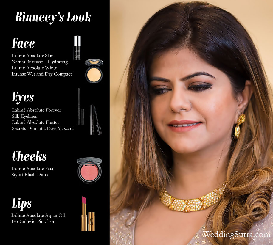 Sejal started by applying Lakmé Absolute Skin Natural Mousse – Hydrating to Binneey’s skin to give her a healthy glow. Using the Lakmé Absolute White Intense Wet and Dry Compact she set the foundation in, giving her a clean base to work on. She lined her eyelids using the Lakmé Absolute Forever Silk Eyeliner in Blacklast and used Lakmé Absolute Flutter Secrets Dramatic Eyes Mascara to darken her eyes. The Lakmé Absolute Argan Oil Lip Color in Pink Tint made for a perfect pout to finish Binneey’s look.