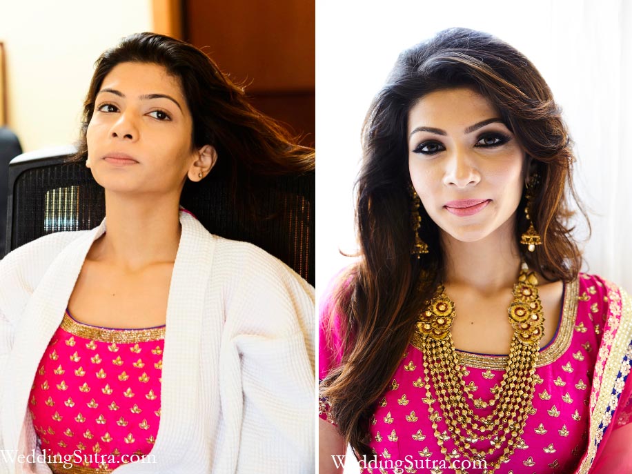 Knowing how big WeddingSutra is, I knew that the team would curate the best for their brides. It’s every bride’s dream to be dolled up by Ojas Rajani and I felt extremely lucky to have had the chance to be groomed by the master himself! He understood my skin complexion perfectly and used the most beautiful color combinations that complemented my skin type. My makeup looked natural yet very glamorous.