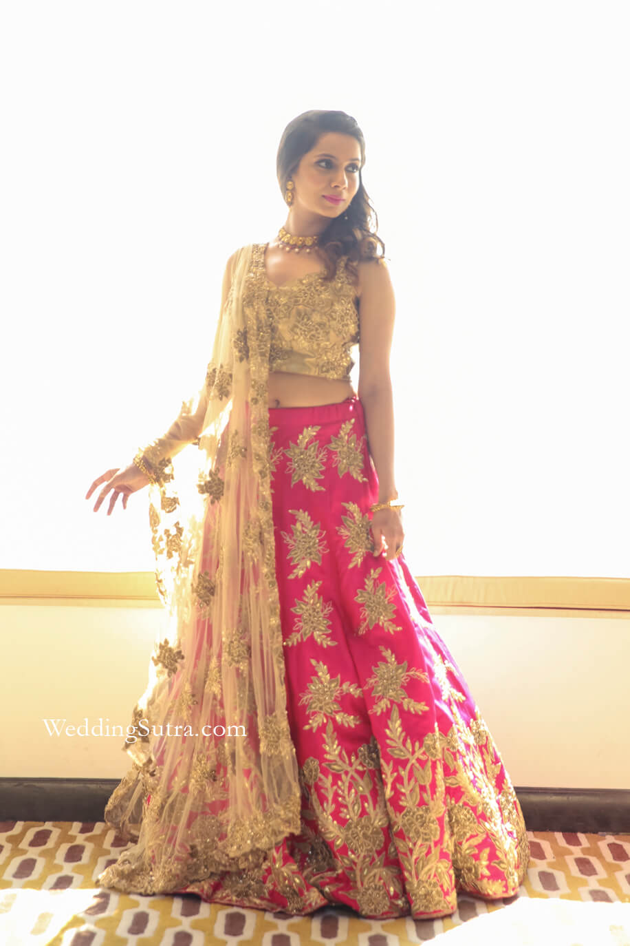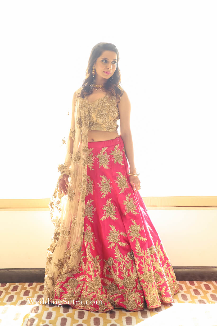 The Kalki lehenga I wore suited me, and my taste perfectly! It was love at first sight and I was sure it would look great on me. It was bright pink with an eye-catching gold blouse and it enhanced my complexion.