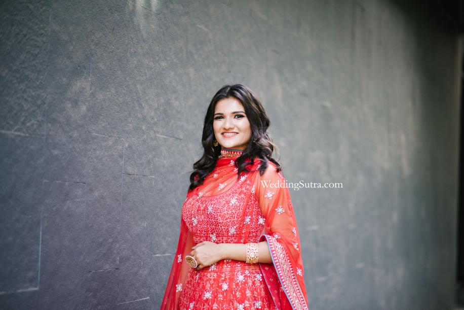 Miloni sat back and let Mausam pick The One from the Lakmé Absolute Matte Ultimate Collection. The expert makeup artist used products from the Kareena Kapoor Khan collection to up Miloni’s glam quotient and give her a dreamy aura. To go with her beautiful makeup, WeddingSutra experts chose a red lehenga from Anita Dongre‘s latest bridal couture capsule collection inspired by the art of Pichhwai. They paired it with stunning bridal jewellery from the Pink City by Anita Dongre range. And team Whatknot made sure the bride felt entirely at ease while posing and captured memories of the day deftly.