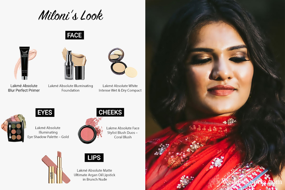 Using trusted products from Lakmé’s newest range – the Lakmé Absolute Matte Ultimate Collection as well as the existing Kareena Kapoor Khan Collection by Lakmé Absolute, Mausam created a wonderful bridal visage on Miloni. The look was a hit and Miloni’s excitement could not have been more evident when she spoke to us about it, “Mausam was excellent! She made me look so glamorous! She really understood my skin type, asked me a few questions to understand what I’m comfortable with and then worked her magic. She was great and knew exactly what would work for my face.”