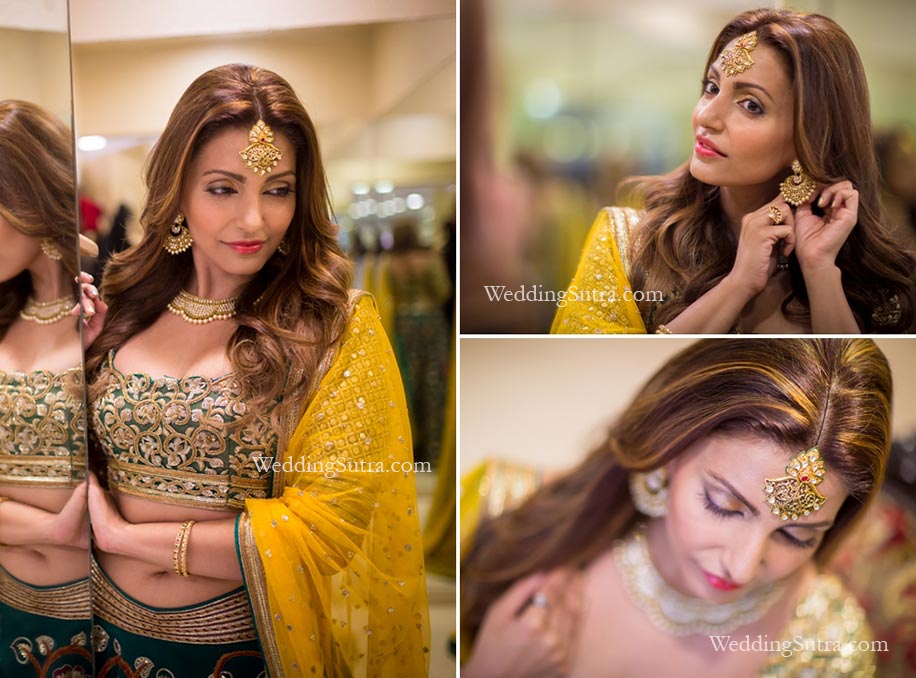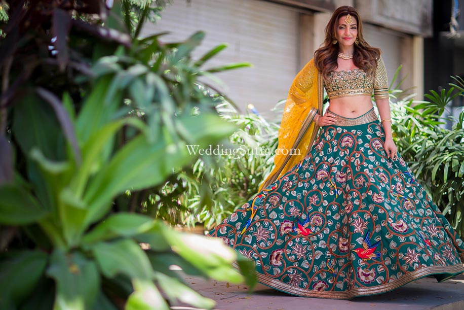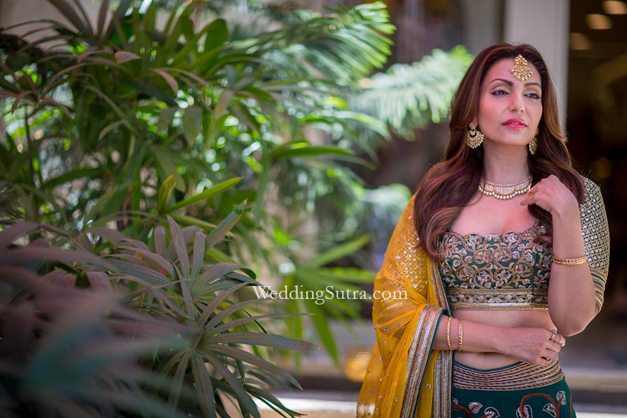 As she is a fashion maven, she dived straight into the wide array of lehengas available at the Neeta Lulla Studio. “They were all so beautifully designed and colorful… but I fell in love with an emerald green floral lehenga that had a contrasting yellow dupatta. The intricate floral embroidery and splendid golden border of the dupatta instantly caught my eye,” shares Navina.