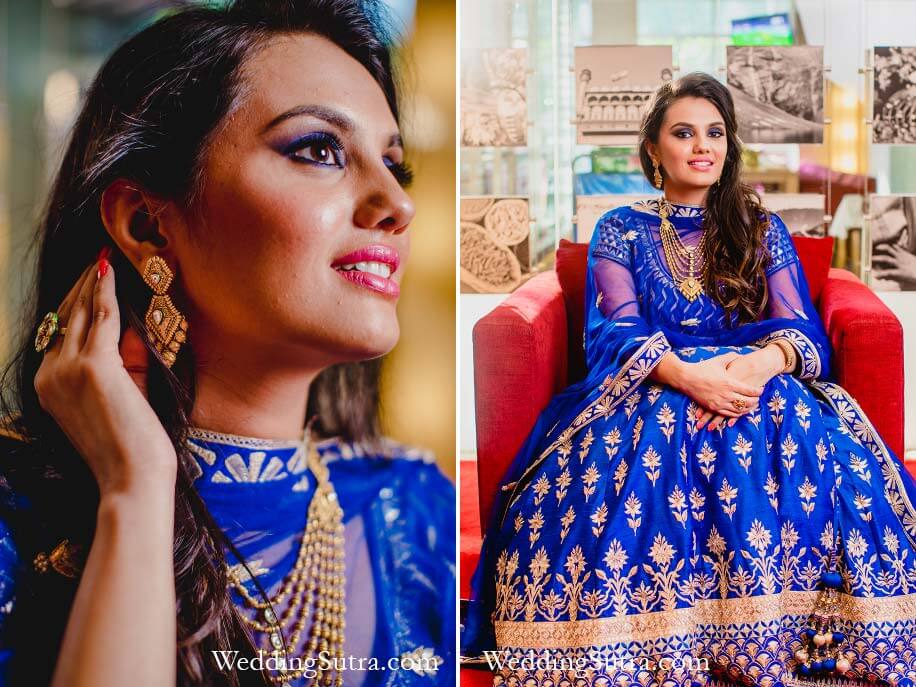 Discover her Sangeet-ready transformation in a royal blue Anita Dongre lehenga at the WeddingSutra On Location Special Edition at the Four Seasons Hotel, Mumbai.