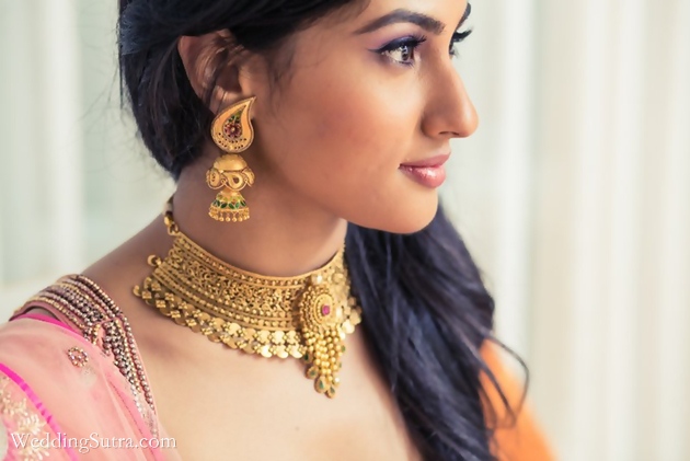 Outfit chosen, it was time for hair and make-up. As a model, I’ve worked with Ralph Daniels earlier and know that he is brilliant at his work. He’s always experimenting, being creative. I loved my eye make-up, my hair in soft curls. The transformation was thrilling. The WeddingSutra team then helped me complete my look with a stunning gold choker set and jhumkas by Nikhaar Jewels.