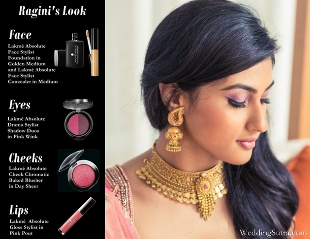 Ragini’s Look Ragini has beautiful skin, a classic Indian almond shaped face and features. Ralph decided on a summery lavender and pastel look for her, keeping the hairstyle and makeup fresh and effortless to complement her pastel hued outfit. After moisturizing her face and letting it sink in, Ralph used the Lakmé Absolute Face Stylist Foundation in Golden Medium shade and buffed it into the skin. “Minimal foundation and careful use of concealer is the key to this look”, adds Ralph. The Lakmé Absolute Face Stylist Concealer in Medium masked any blemishes and blended well. He then set the makeup with the Lakmé Absolute White Intense Wet and Dry Compact in Golden Medium on the T-zone and kept the rest of the face untouched. Two shades from the Lakmé Absolute Drama Stylist Shadow Duos in Pink Wink were used all over the eyelids, creating a soft dual color base, extending right up to the brow bone. Ralph then drew a rough line on the upper lash line with the Lakmé Absolute Kohl Ultimate and then smudged it to soften it. With the same brush he smudged the rest of the Kohl on the lower lash line. After curling the lashes, two coats of Lakmé Absolute Flutter Secrets Volume Mascara was used, making sure to separate the lashes between applications with a brush. A fresh Day Sheer shade of the Lakmé Absolute Cheek Chromatic Baked Blusher was brushed on the apples of her cheeks and blended towards the temples. For the lips Ralph used the Lakmé Absolute Gloss Stylist in Pink Pout. Finally, Ragini’s hair was given a side swept wavy look.