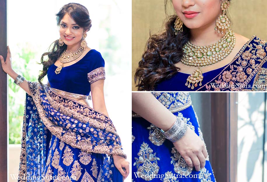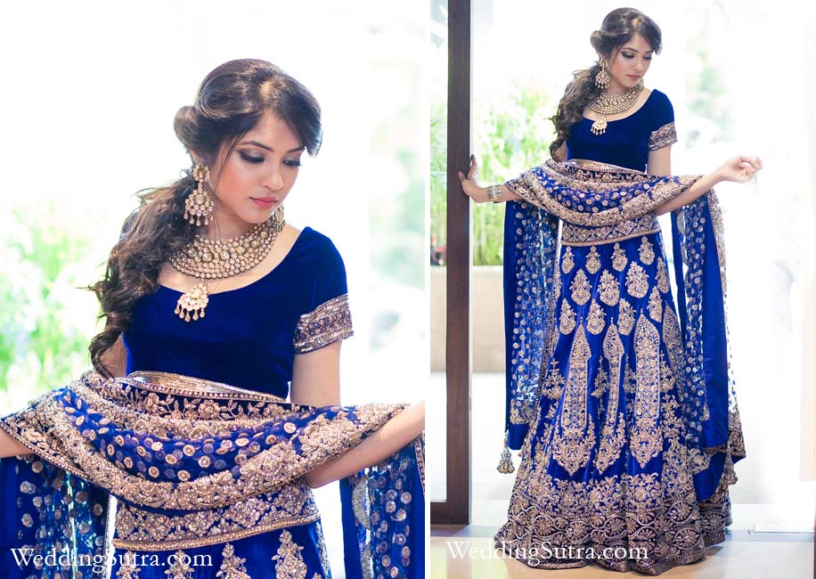 When I reached the store on the day of the shoot, I first met Wedding Planner Neha Shroff who took me around to help me make my selection. There were so many stunning options to choose from, but when I saw this beautiful Royal Blue Lehenga, I knew I had to look no further, it was just the perfect ensemble for a Sangeet or Reception. My selection was made and I was ready for makeup and hair.
