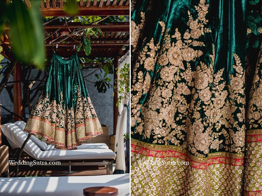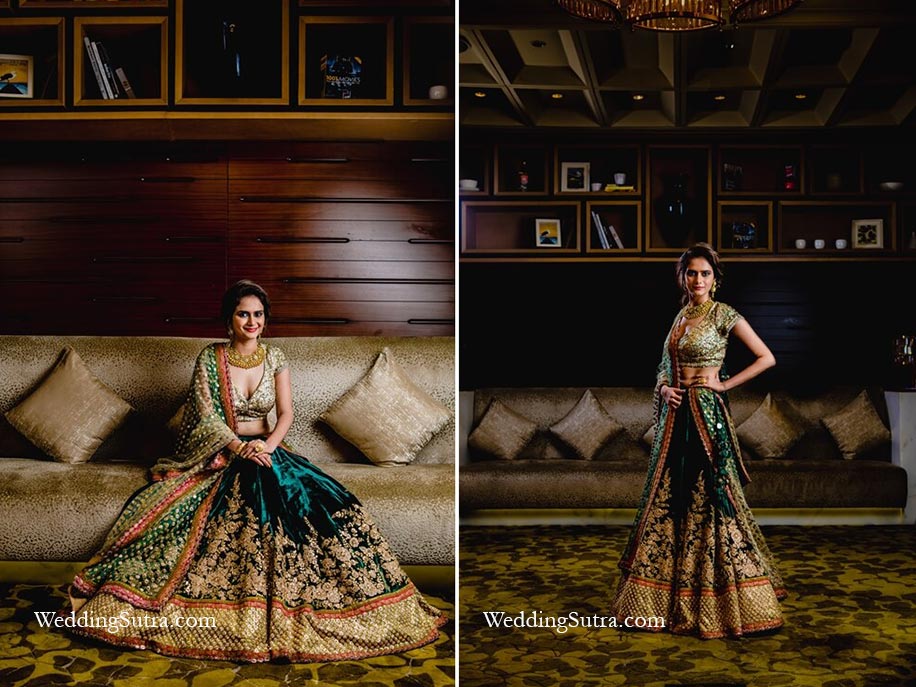 “I’ve always had a fairy tale wedding in mind and I was so pampered that day! To start with, the location of the shoot was perfect, like a dream come true. I remember trying on a lot of lehengas in the store until I saw a beautiful green Sabyasachi creation. I think it suited me really well – it was gorgeous and made me look very elegant. The jewellery we picked was from Azva, the perfect combination of sophistication and luxury. It complemented the lehenga so beautifully and came together like a dream.
