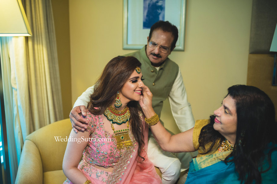 “You will always find people talking about how every girl grows up dreaming about the day when she would marry the love of her life and begin a fresh chapter with him by her side. However, what is never expressed enough is the ache of leaving her parents loving wings that have protected her for so long in order for her to be able to take this new flight. For me this day was all about indulging myself in their company, reliving the good times and raising a toast to all that they have done for me.”