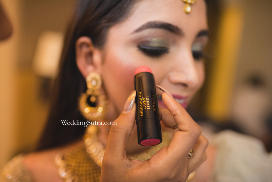 Makeup artist Kajol R Paswwan gave the bride metallic eyes by adding iridescent pink tones from the Lakmé Absolute Illuminating Eye Shadow Palette – French Rose on her lids. “Kajol and her team did a wonderful job with the makeup. Everyone’s look was a result of meticulous effort and I thought that my look, in particular, was fabulous,” Richa said.